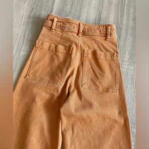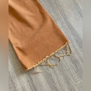 ZARA Awesome Rusty Orange Wide Leg High Rise Pants with Fringe Cuffs.