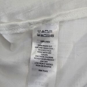 Elegant white linen top. Features a classic collar and V-neck. Perfect for casual or formal wear.