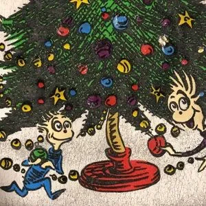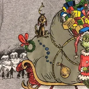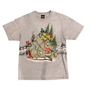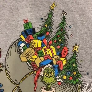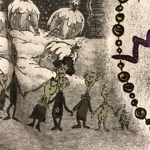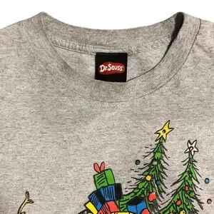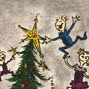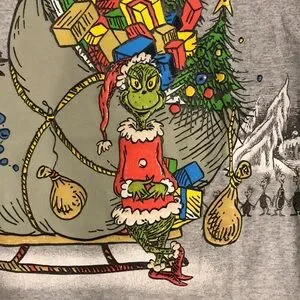 Dr Seuss Grinch T-shirt, used and worn! The item is still in good condition, has a lot of life, the graphic design of the grinch has lil to no cracks, has been well taken care of over the years! There is hardly any fading . The item also has some shine to it like a glossy layer over some parts of the shirt.