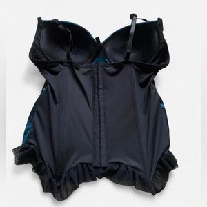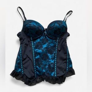 Blue & Black Push Up Corset Top with Lace & Ruffles
