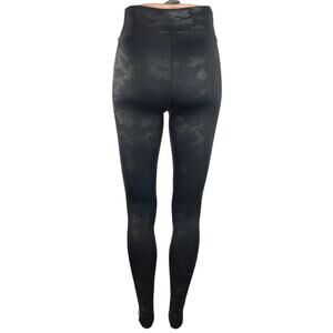 Spanx Black Faux Leather Camo Activewear Athletic Fitness Ankle Leggings Size XS