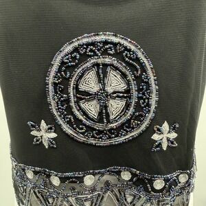 Vintage Y2K Papell Boutique Beaded Mesh Overlay Tank in Black Size Small
