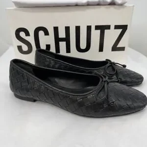 SCHUTZ New in Box Arissa Woven Ballet Square Toe Flat in Black // 6