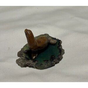 Mini hand-carved seal / sea lion figurine made from natural stone with brown, gray, and cream marbling. Smooth polished finish with carved facial features and flippers. Solid and nicely detailed.