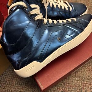 NIB $700 Bally Men Eticon Leather High-Top Sneakers Blue 10.5 US