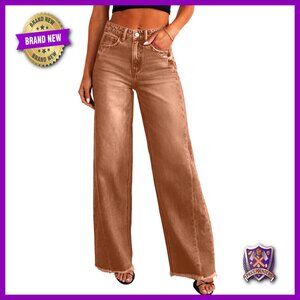 Wide Leg Jeans High Waisted Stretchy Baggy Raw Hem Denim Palazzo Pants Trendy