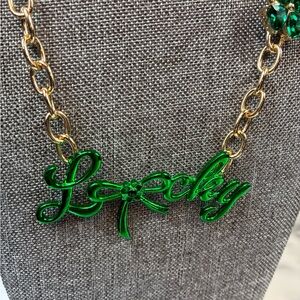 Brand new with tags, fun Betsey Johnson Lucky Necklace. Gold metal with green enamel & crystals. These novelty necklaces are always in high demand.