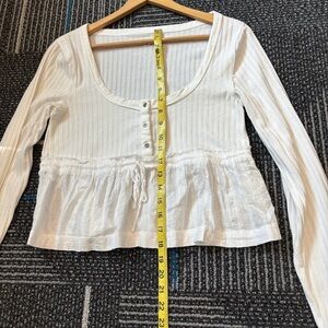Anthropologie Pilcro Long-Sleeve Scoop-Neck Babydoll Top Small White