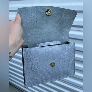 NWT House of Harlow 1960 Leather Light Gray Animal Print Crossbody Purse…