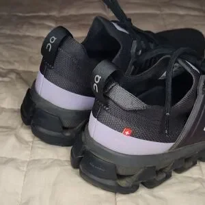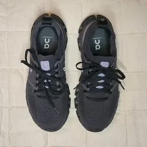 Stylish black athletic shoes with a sleek design. Perfect for running and casual wear.