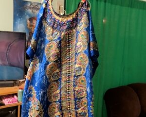 Elevate your wardrobe with this vibrant blue tunic. Perfect for any occasion, this tunic features intricate patterns that add a touch of elegance. A must-have for fashion-forward individuals.