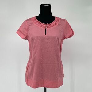 TALBOTS Women’s Top S Pink Keyhole Neck Short Sleeve 100% Cotton Blouse Pleated
