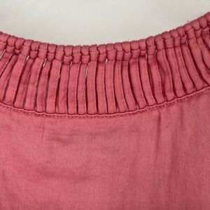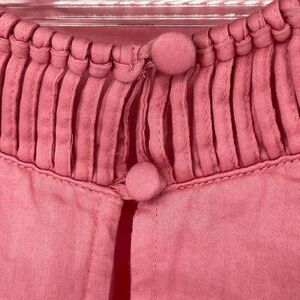 This lovely Talbots women’s short sleeve top in a soft pink hue is a perfect everyday blouse with elevated details. Made from 100% cotton, it features a beautifully pleated neckline, fabric-covered buttons, and a subtle keyhole front for a feminine touch. Lightweight and comfortable, this top is great for casual wear, work, or warm-weather outings. Size Small.