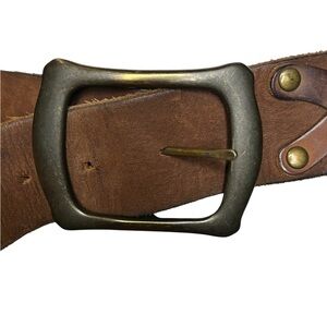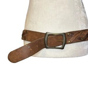 Brown Genuine Leather Belt Gold Tone Buckle Braided Medium size Good condition Lenght 43.5