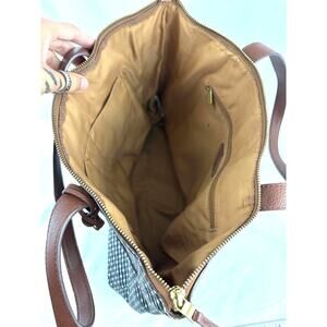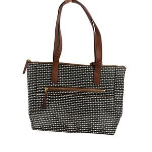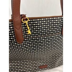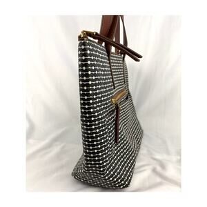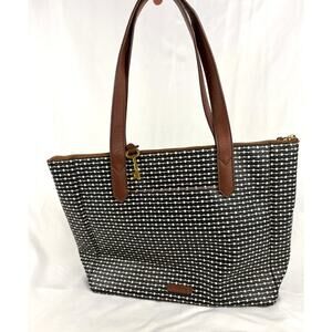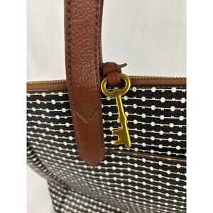Fossil Rachel Leather Black Striped Tote Purse Classic Brown Black