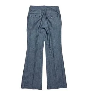 Calvin Klein offers these women's wide leg pants in a regular size 6, crafted from cotton in a solid gray color. They feature a mid-rise fit with a 32-inch inseam. They are machine washable for easy care. This item is pre-owned.
