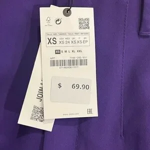 Zara purple high waisted wide leg trouser pants size XS NWT