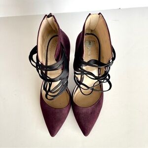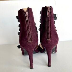 Preloved NINE WEST | Purple Elastic Detail Faux Suede Booties Sz 9. In great used condition. NOTE: There is a few small scuffs on the heels as indicated in the photos.