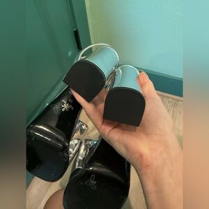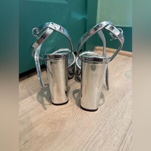 Prada Womens Metallic Leather Platform Heels Silver 41
