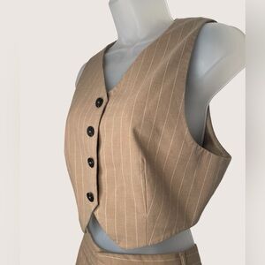 Chic tailoring meets effortless layering. This Zara pinstripe vest features a rich brown base with classic cream striping for a polished, menswear-inspired look. Perfect styled solo, layered over a blouse, or paired with trousers for a coordinated vibe.
