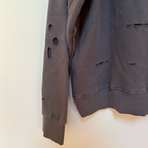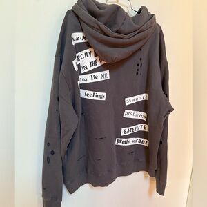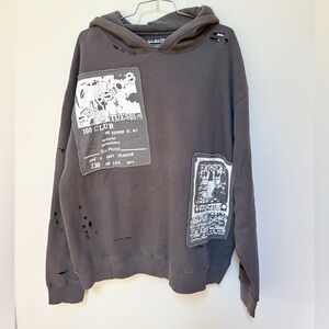 Light washed grey hoodie with patches and distressing all over