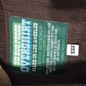 Chocolate brown overshirt by Big Bud Press. Unisex soft corduroy brand new, never worn XXS