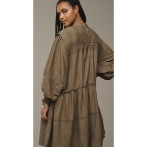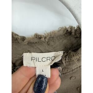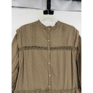 Pilcro Long Sleeve Mock Neck Swing Mini Dress Size L Rustic Olive Boho Eyelet