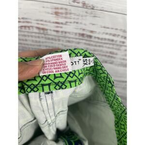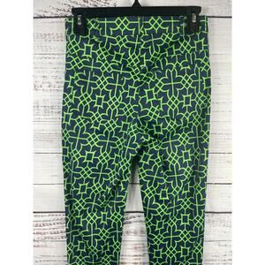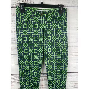 Gretchen Scott Pants Women's XS Navy Green Geometric Print Stretch Cotton Ankle