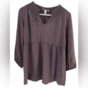 Isabel Maternity NWT Purple Smocked V-Neck Babydoll Top XS Long Sleeve