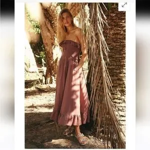 FREE PEOPLE Lush Life Linen Strapless Midi Dress - Antique Oak size xs