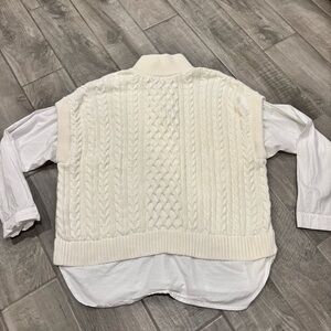 Pilcro by Anthropologie Chunky Cable-Knit Twofer Sweater