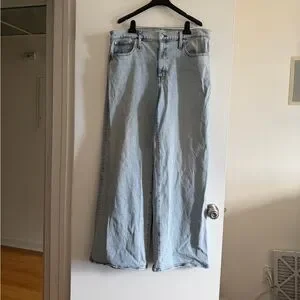 Madewell Lightwash Blue Denim Superwide-Leg Jeans size 33 EUC