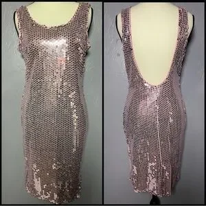 Excellent used vintage condition, Glenrob 90's pink sequin bodycon mini dress. Sleeveless, open back, absolutely gorgeous! Stretchy material, perfect for a night out. Size tag is a vintage 9/10.