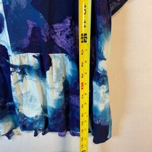 Juicy Couture Watercolor Floral Peplum Top Short Sleeve Blue Purple - Size L