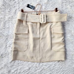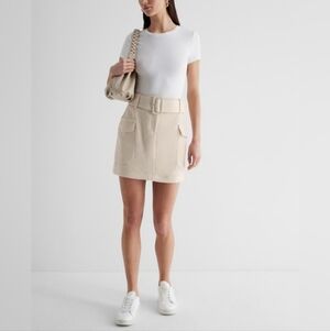 Express NWT Super High Rise Belted Cargo Mini Skirt. Size 8 with a little stretch. Polyester. Lined. Large flap pockets. Belted with belt loops. Brand new with tags.