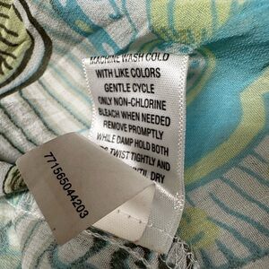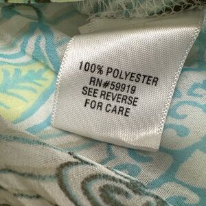 This Apt. 9 blouse features a long-sleeve, sheer design with a multicolored blue, grey, and olive pattern. The V-neckline and subtle ruffled details add a romantic, elevated touch, perfect for layering over camisoles or under blazers. Lightweight polyester makes it ideal for work, casual outings, or evening events.
