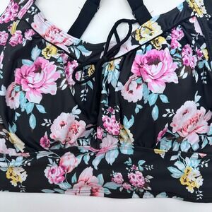 Bloomchic Floral Print Halter Tankini Top Plus Size 22-24 Black Pink Blue Yellow