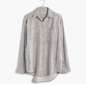 An oversized button-down shirt with handy hidden pockets. Coolly striped, it's the ultimate wear-all-season-long shirt. Bonus: The soft, textured flannel only looks better with each wash.