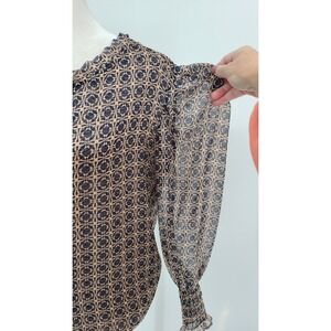 Misa Los Angeles Sheer Boho Women Blouse Top XS Ruffle Tassel Balloon Blue Tan
