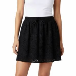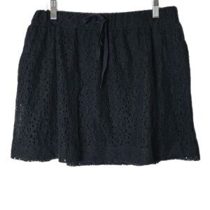 Lou & Grey Women's Lace Mini Skirt Size S Black Drawstring Waist Pockets Lined