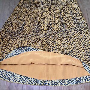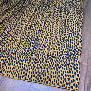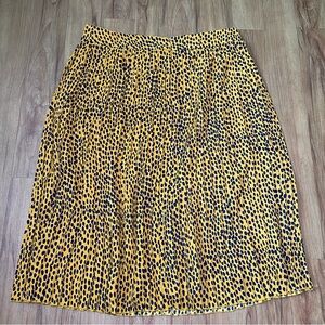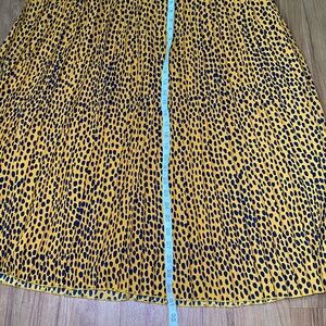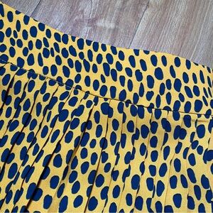 J.Crew Pleated Midi Skirt Women's Size 16 Mustard Yellow Navy Animal Print Spots