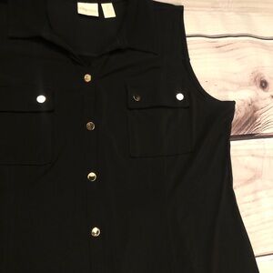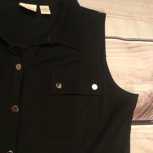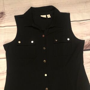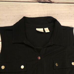 Chico’s Jersey Golden Button Down Sleeveless Collared Black Maxi Dress size 12