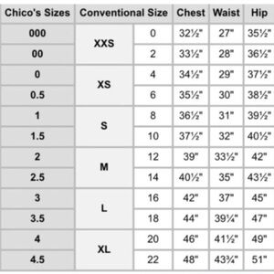 Size 2 Chico’s should be equivalent size 12/14 regular. See pictures for measurements and material info