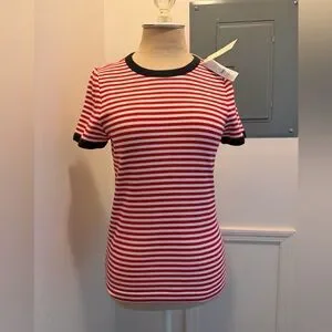 NWT DÔEN Vivi Tee in Rouge Nantucket Stripe, size L
