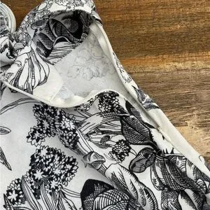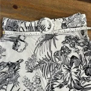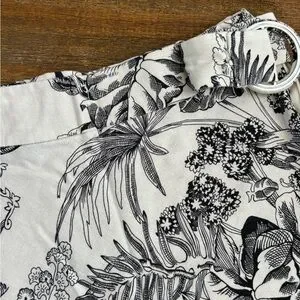 Chic A-line skirt with a striking black and white botanical pattern. Perfect for versatile styling. Removable matching belt. No flaws.