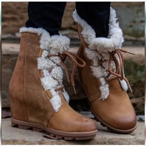 Sorel Joan Of Arctic Wedge II Shearling Boots Waterproof Leather Lace-up 9.5