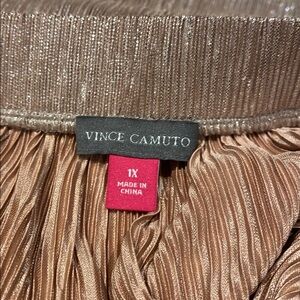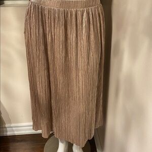 Chic and stylish midi skirt has elastic band. Features a shimmering tan fabric. 100% Polyester Perfect for versatile wear.