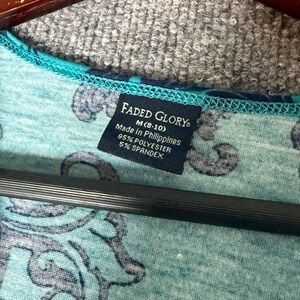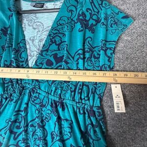 Faded Glory Women Teal Navy Paisley Print Kimono Dress Size M 8 10 V Neck