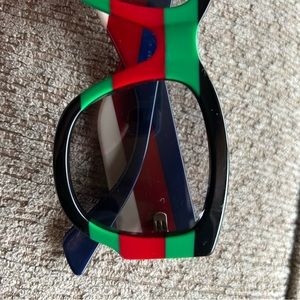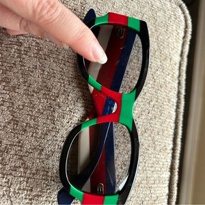 Missing one of the Gucci Symbol Stylish Gucci sunglasses with bold black, green, and red frame. Perfect for a chic look.