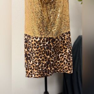Trendy Southern Style Sequin & Leopard Print Tunic - Size Medium